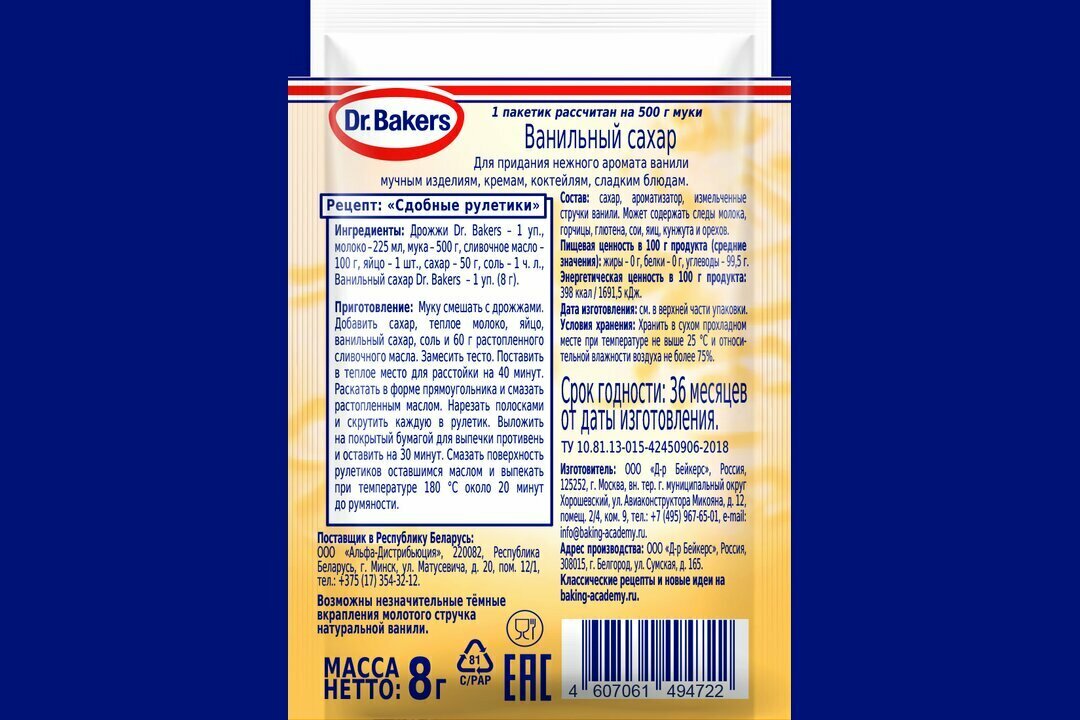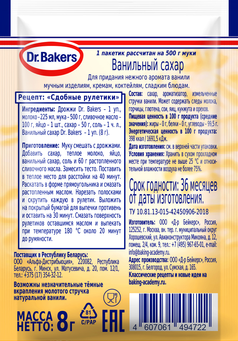 Сахар ванильный Dr.Bakers, 8 гр. интересное:
