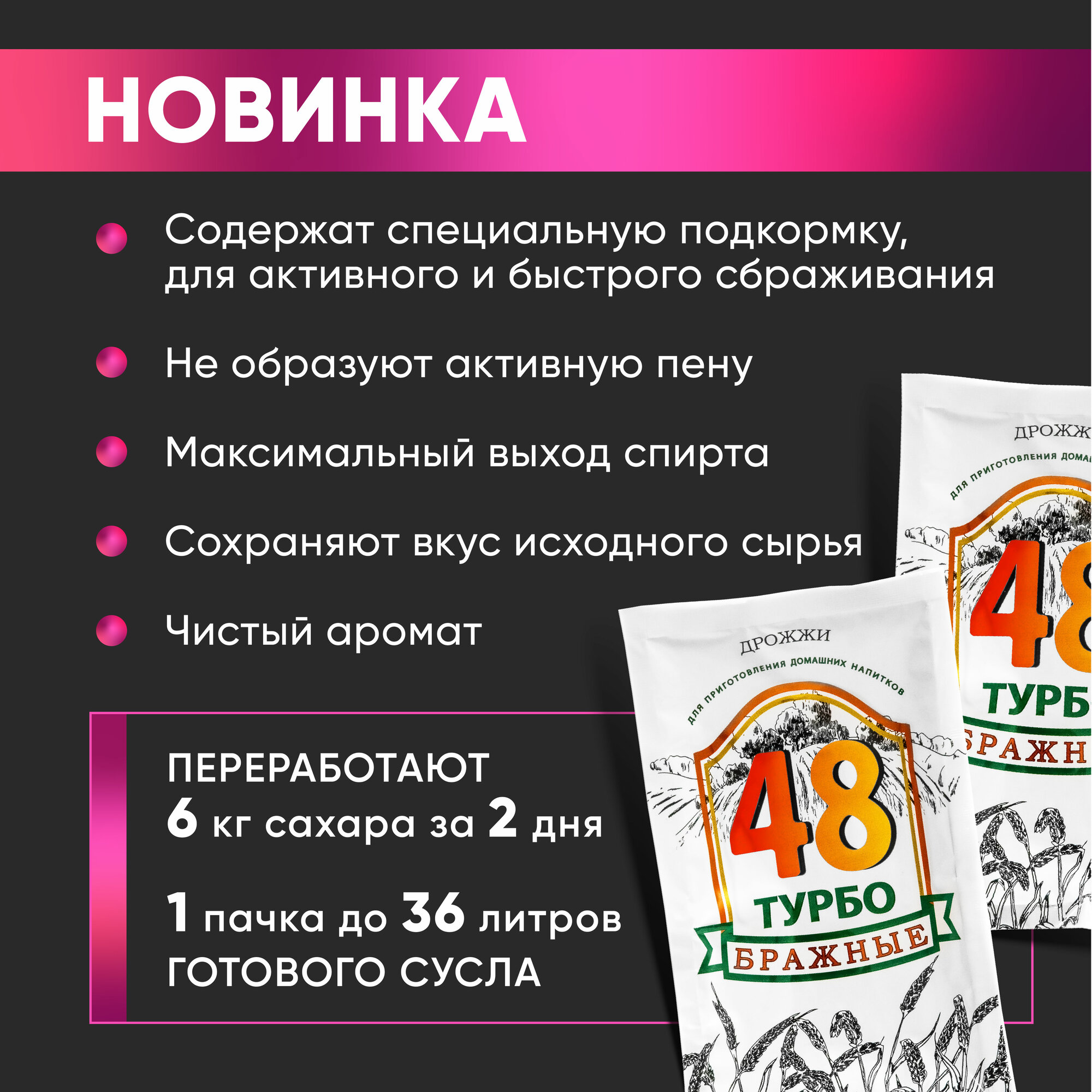 Бражные Турбо дрожжи 48 часов. Для изготовления самогона, рома, кашаса, текилы, виски. 1 шт. 130 г.