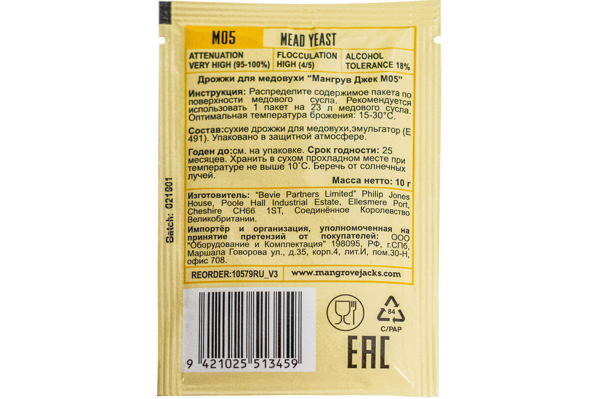 Дрожжи для медовухи Mead M05 Mangrove Jecks интересное: