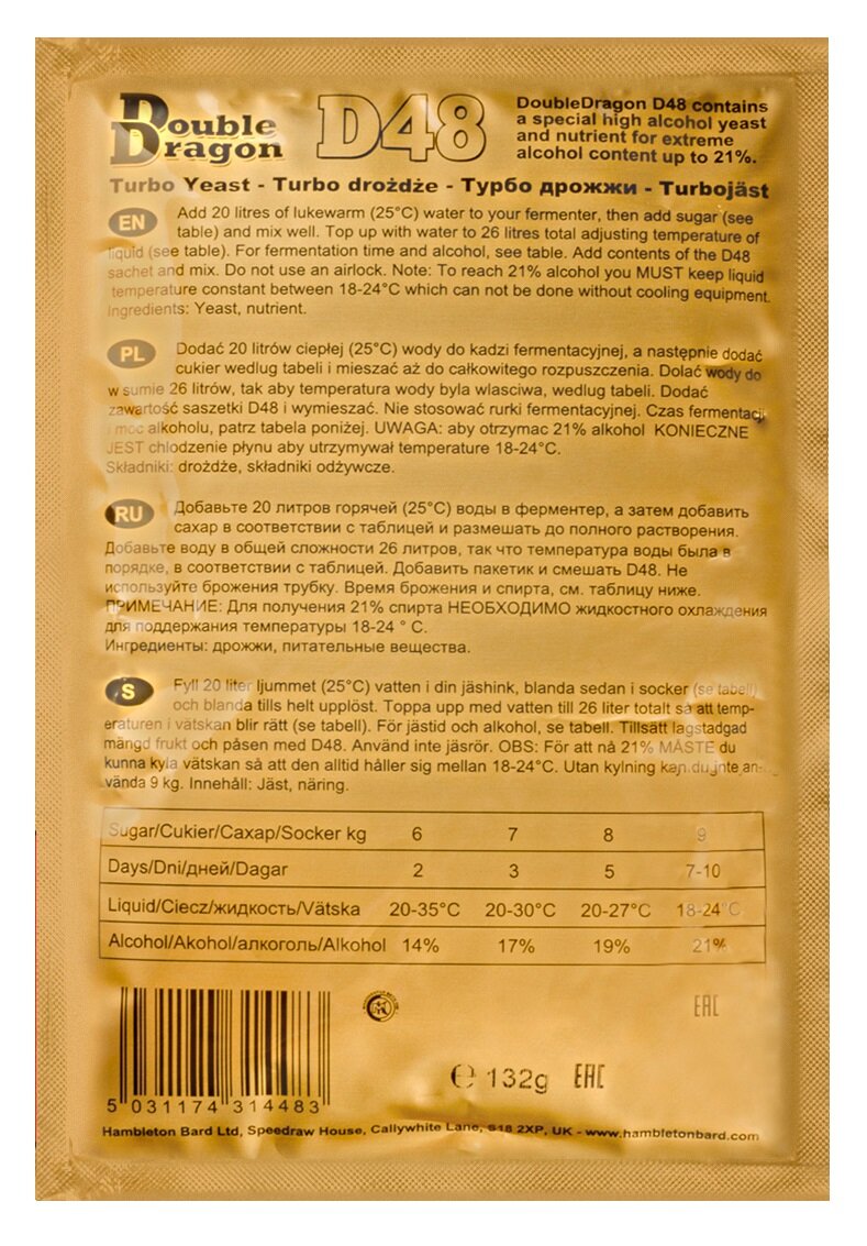 Дрожжи спиртовые Double Dragon D48 Turbo / Дабл Драгон Д48 Турбо, 1 упаковка интересное: