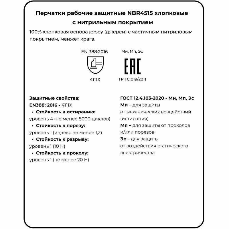 | Материал покрытия перчаток | нитрил |