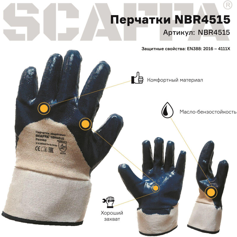 Перчатки с полным нитриловым обливом SCAFFA NBR4515 Размер 11