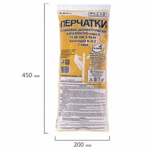 Перчатки резиновые АзРИ диэлектрические класс 0, до 1000 вольт, размер 3, средний