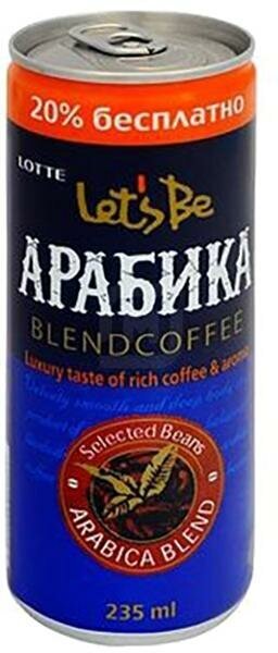 Напиток кофейный Lotte Lets Be / Летс би Арабика, 235мл ж/б (Южная Корея)