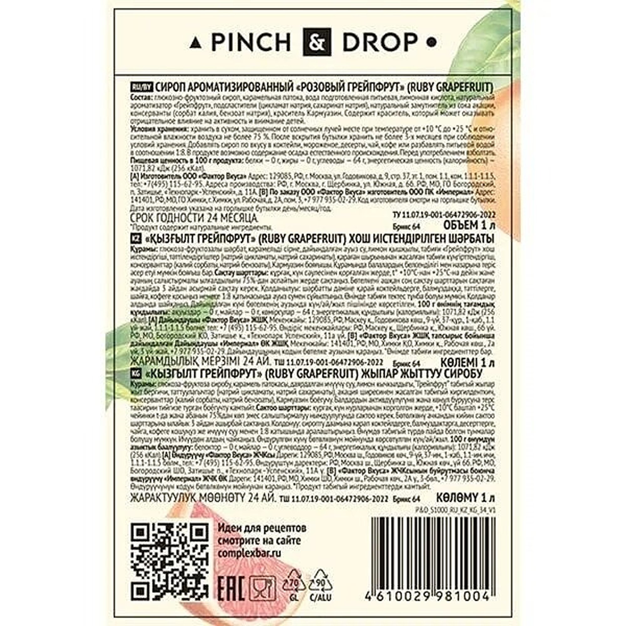 СохранитьСироп Pinch&Drop "Грейпфрут розовый" интересное: