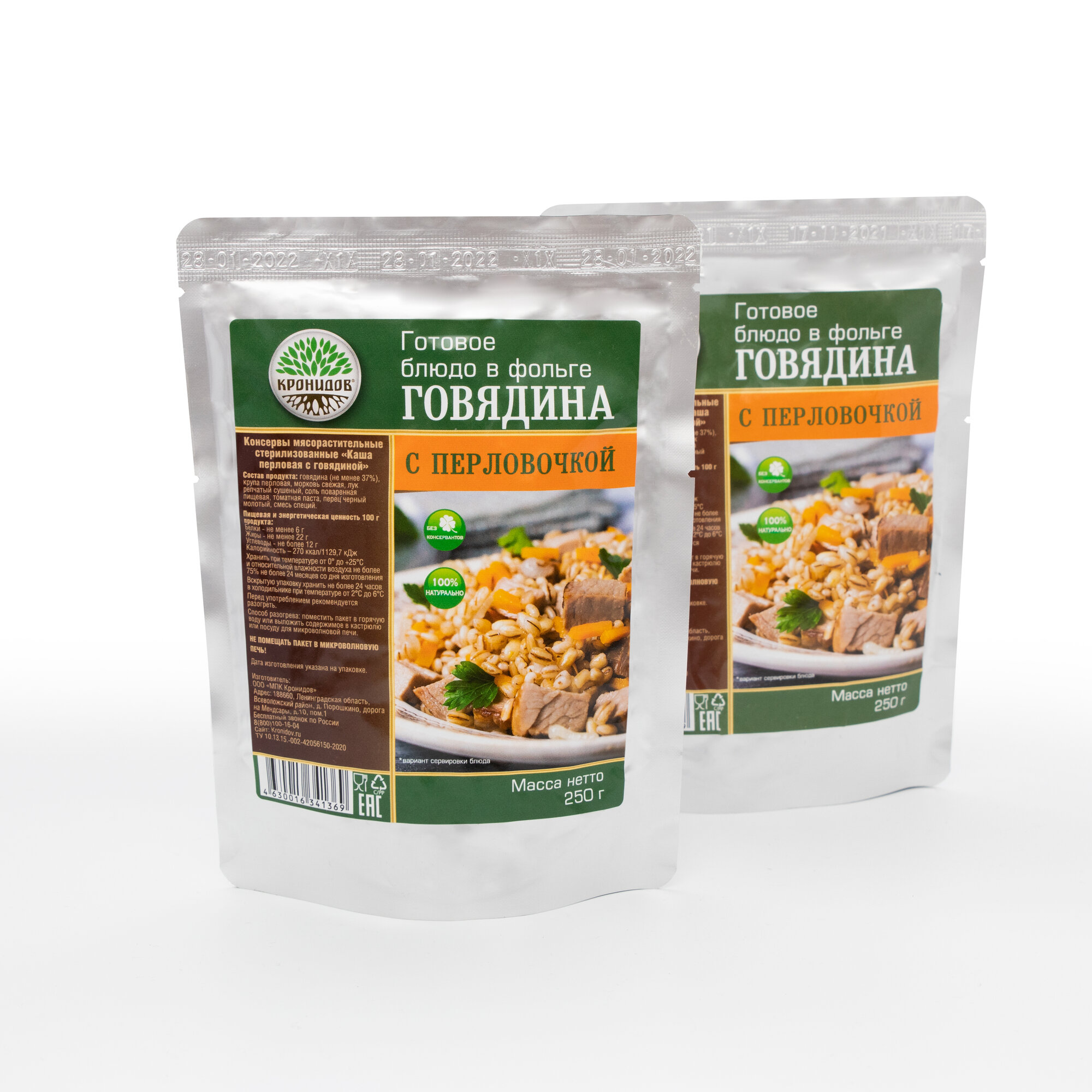 Каша перловая с говядиной Готовое блюдо в реторт-пакете ТМ Кронидов. Консерва Набор 2 шт. по 250 г