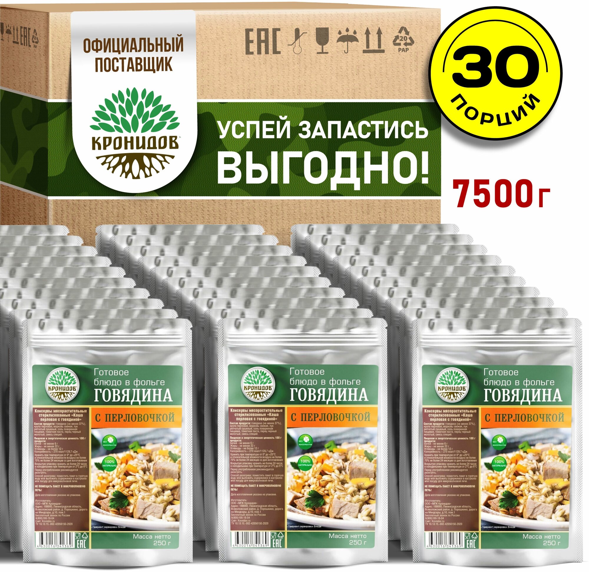 Купить Кронидов Каша перловая с говядиной Готовое блюдо в реторт-пакете. Консервы натуральные Набор 30 шт. по 250 г