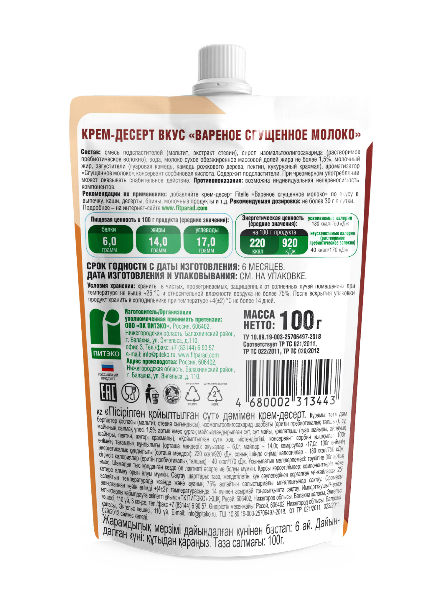 Купить Крем-десерт Fitelle Вареное сгущенное молоко, 100г