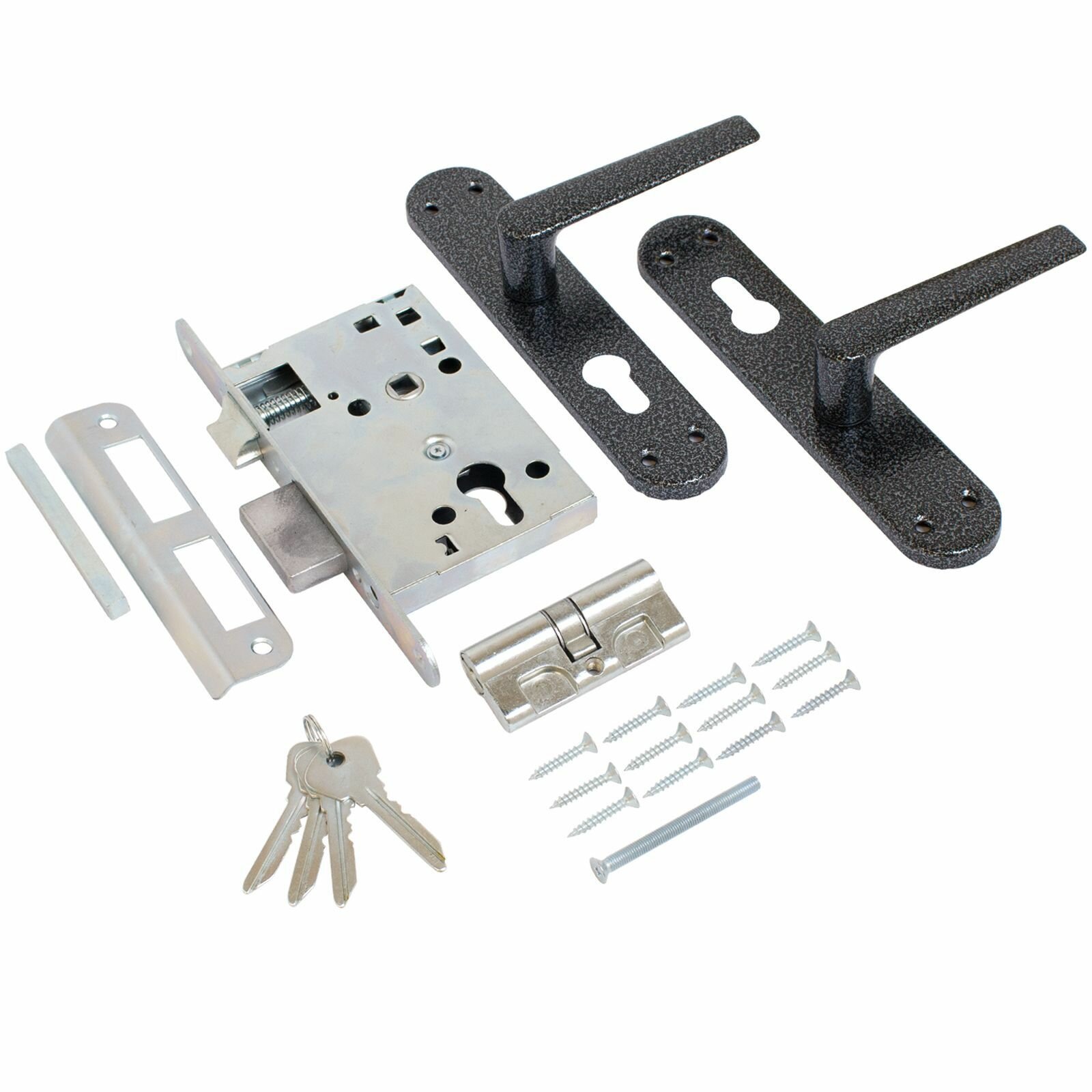 Замок врезной с ручками и цилиндровым механизмом для деревянных дверей (цвет медь) Птимаш ЗВ4-3.08 (шуруп)