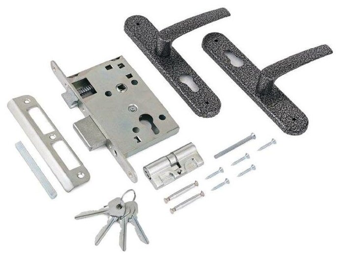 Врезной замок с ручками для деревянных дверей (шуруп), Птимаш ЗВ4-3.08 Серебро