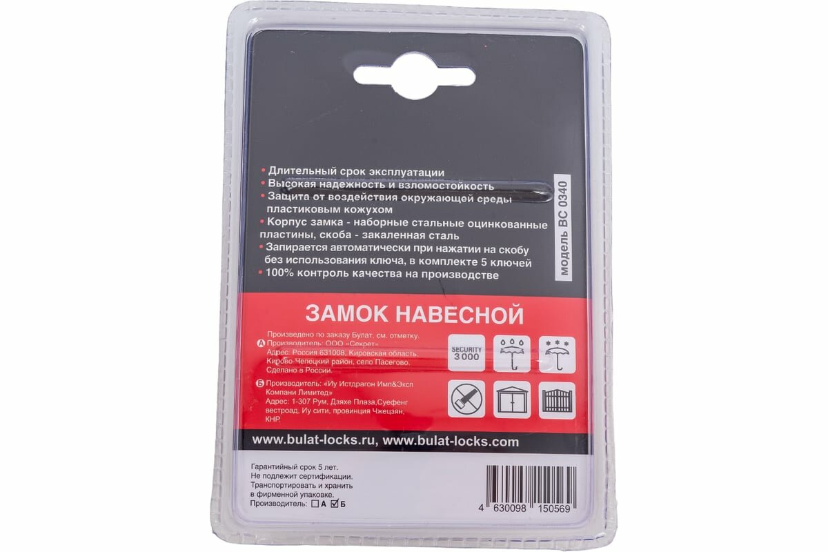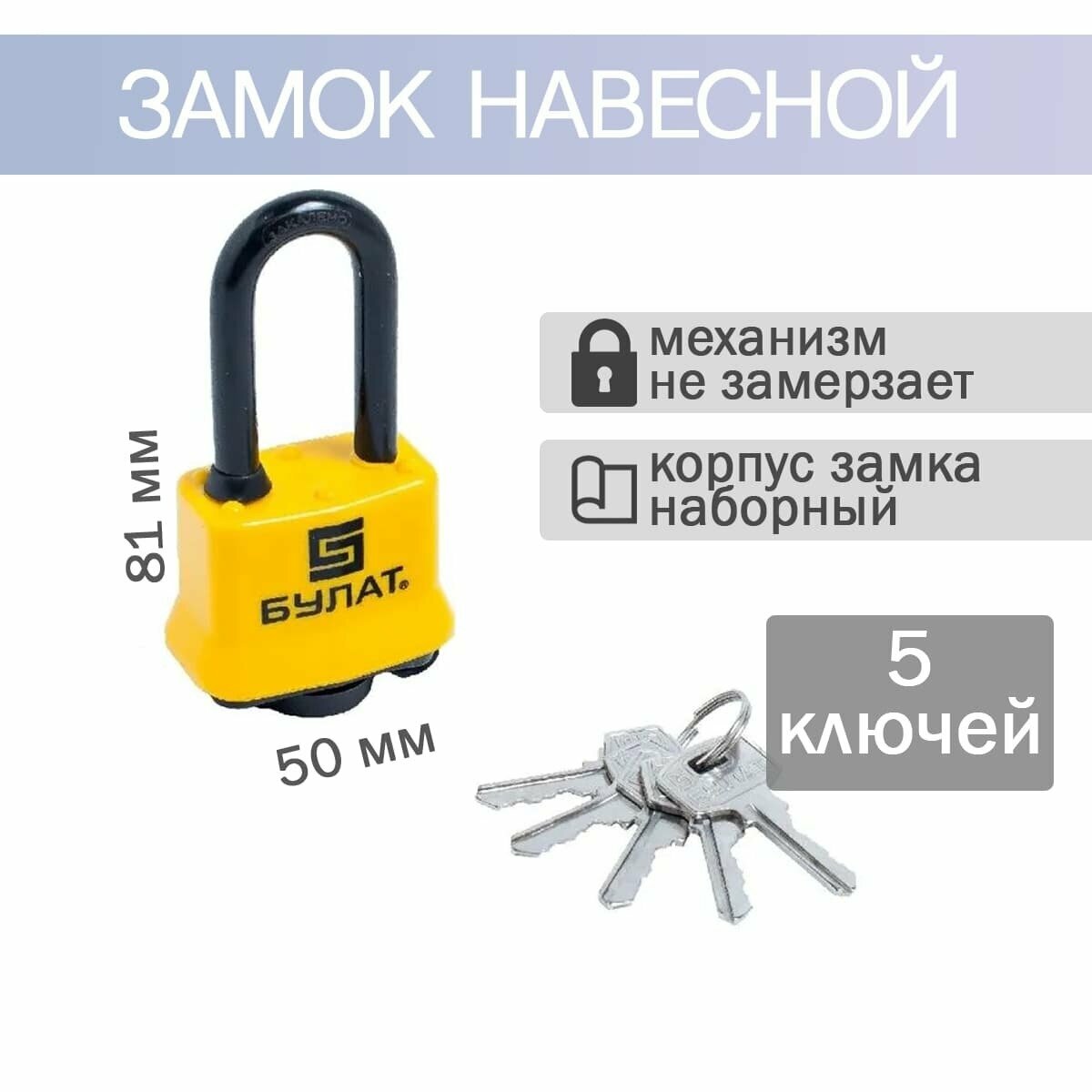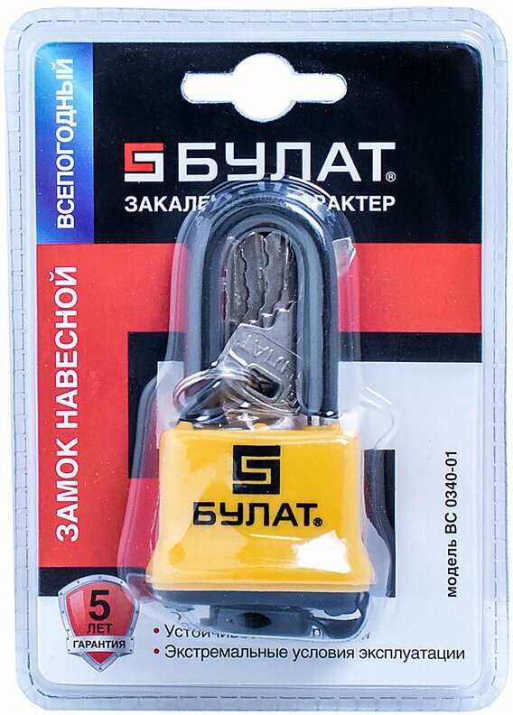 Замок навесной Булат, ВС 0340, 13 454, блистер, цилиндровый, всепогодный, желтый, 51 мм, 5 ключей интересное: