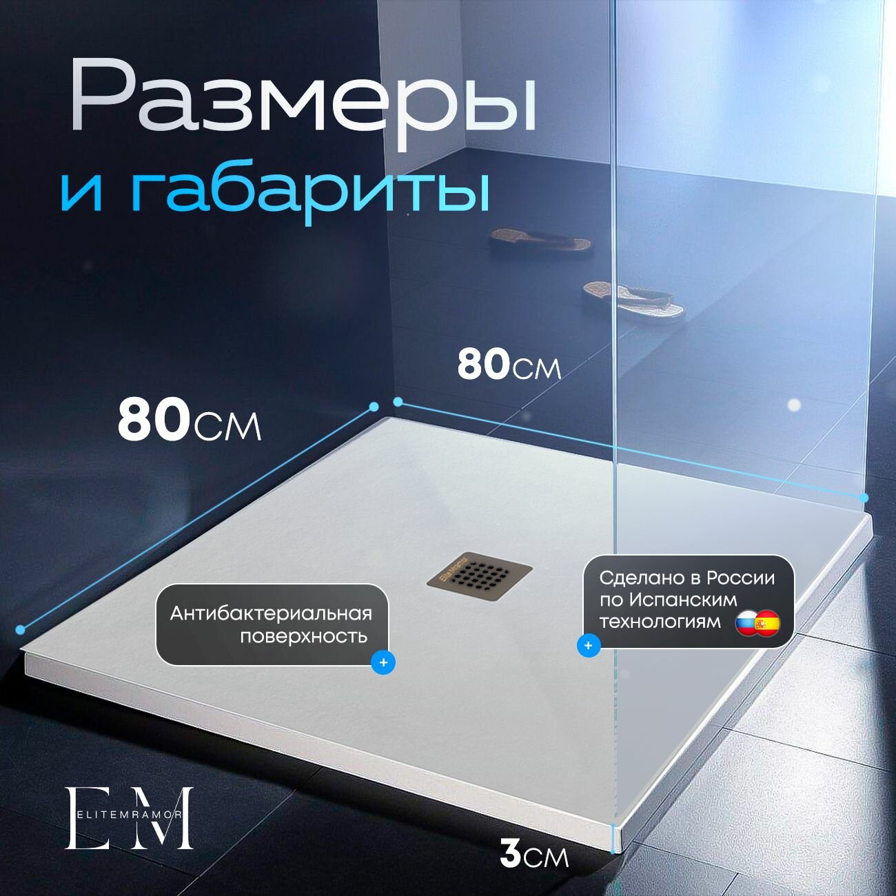 СохранитьПоддон для душа 80х80 см, ELITE MRAMOR, белый искусственный камень интересное: