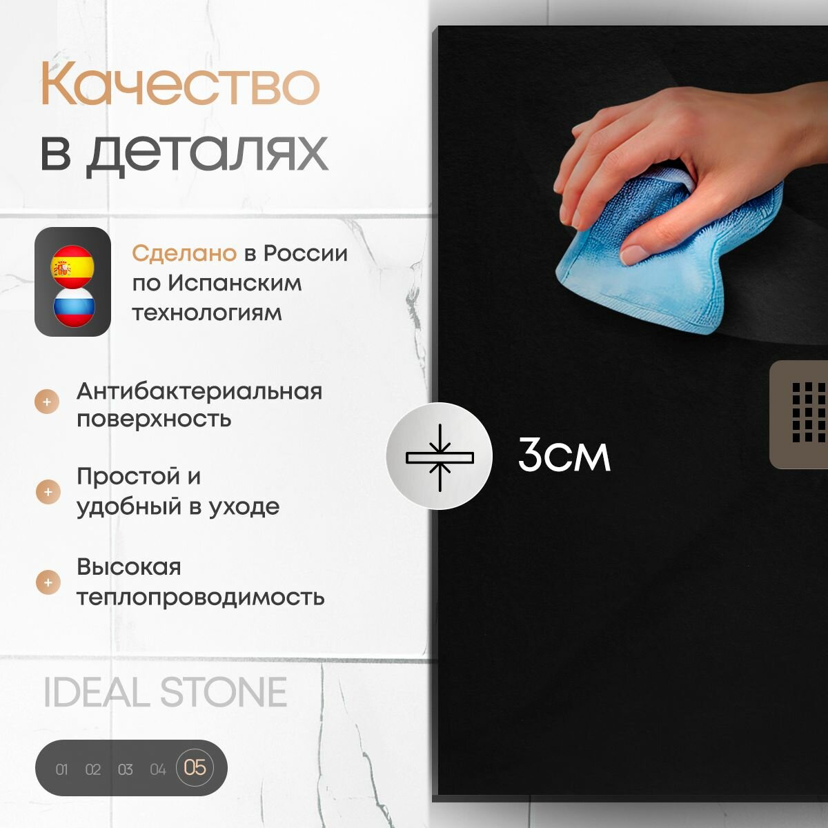 СохранитьПоддон для душа 90х90 см, IDEAL STONE, черные искусственный камень интересное: