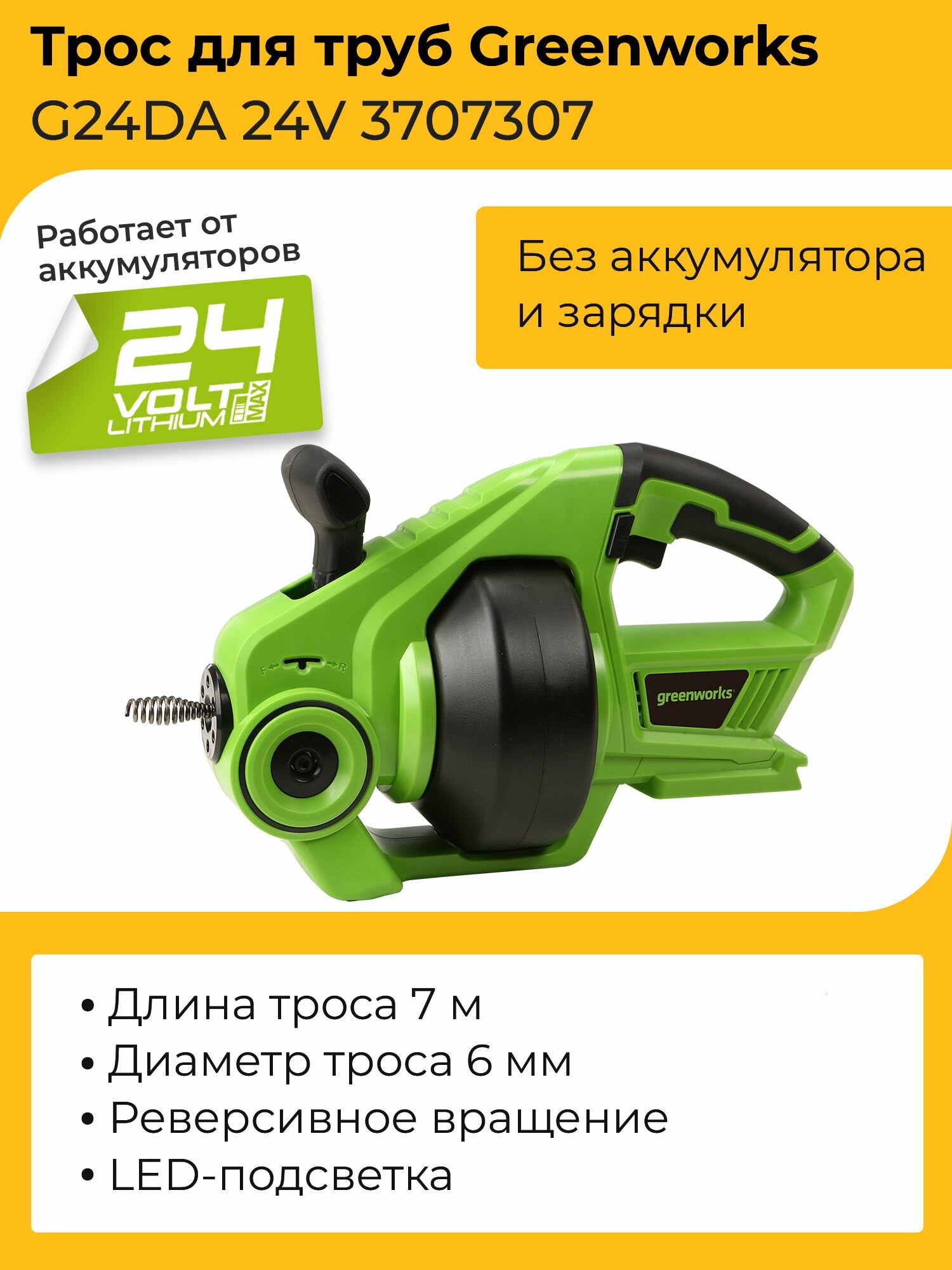 Трос сантехнический аккумуляторный Greenworks, G24DA, 24V, без АКБ и ЗУ 3707307