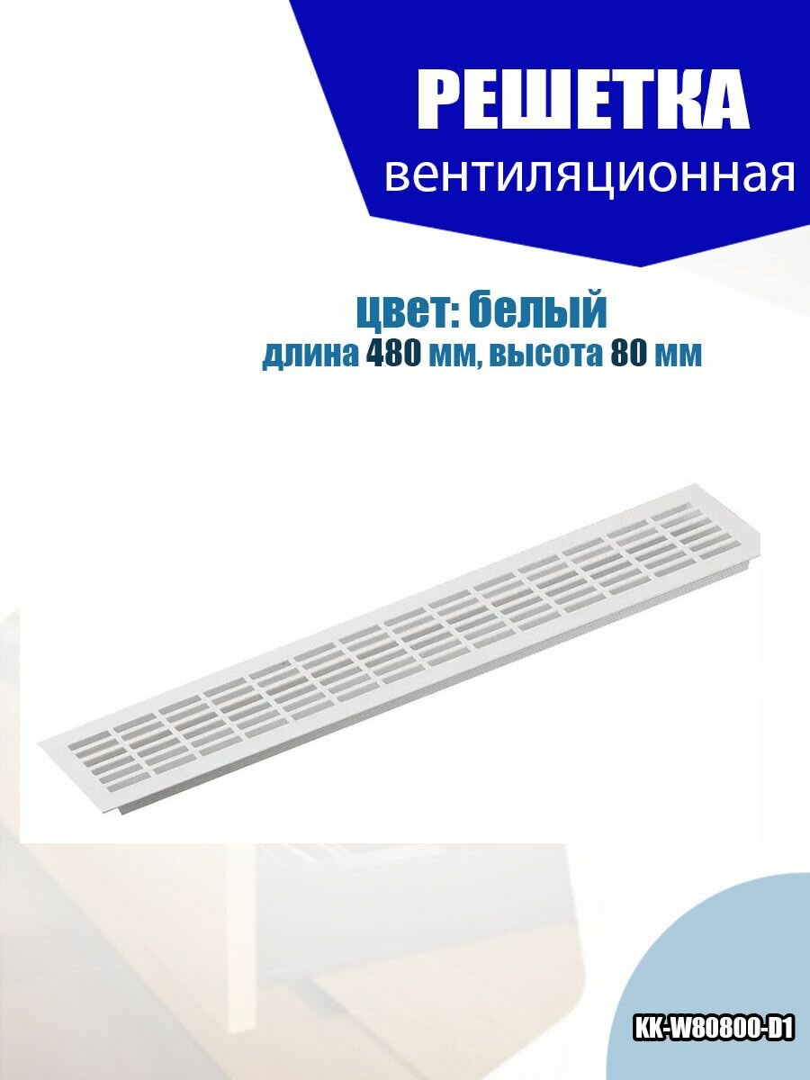 Решетка вентиляционная металлическая мебельная 480х80 мм белая