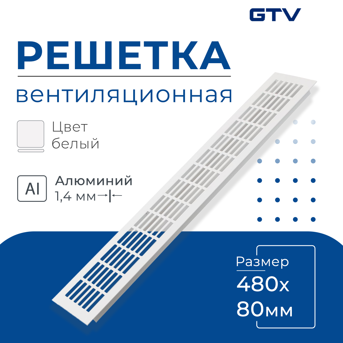 Вентиляционная решетка GTV, 480х80 мм, алюминий