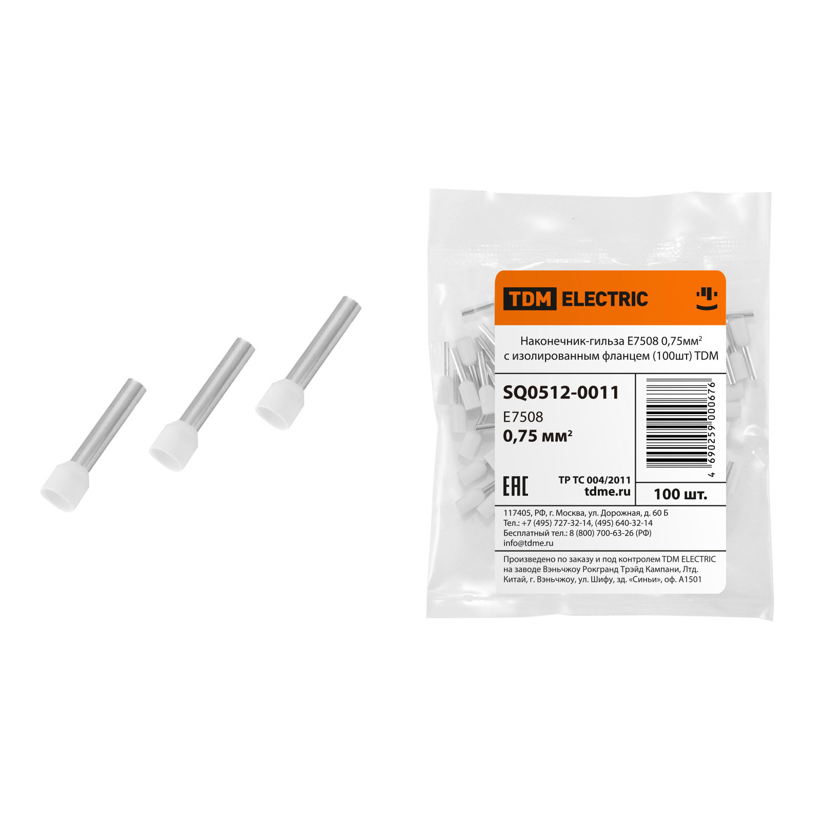 Купить Наконечник-гильза 0.75мм Е7508 TDM SQ0512-0011, 100 штук