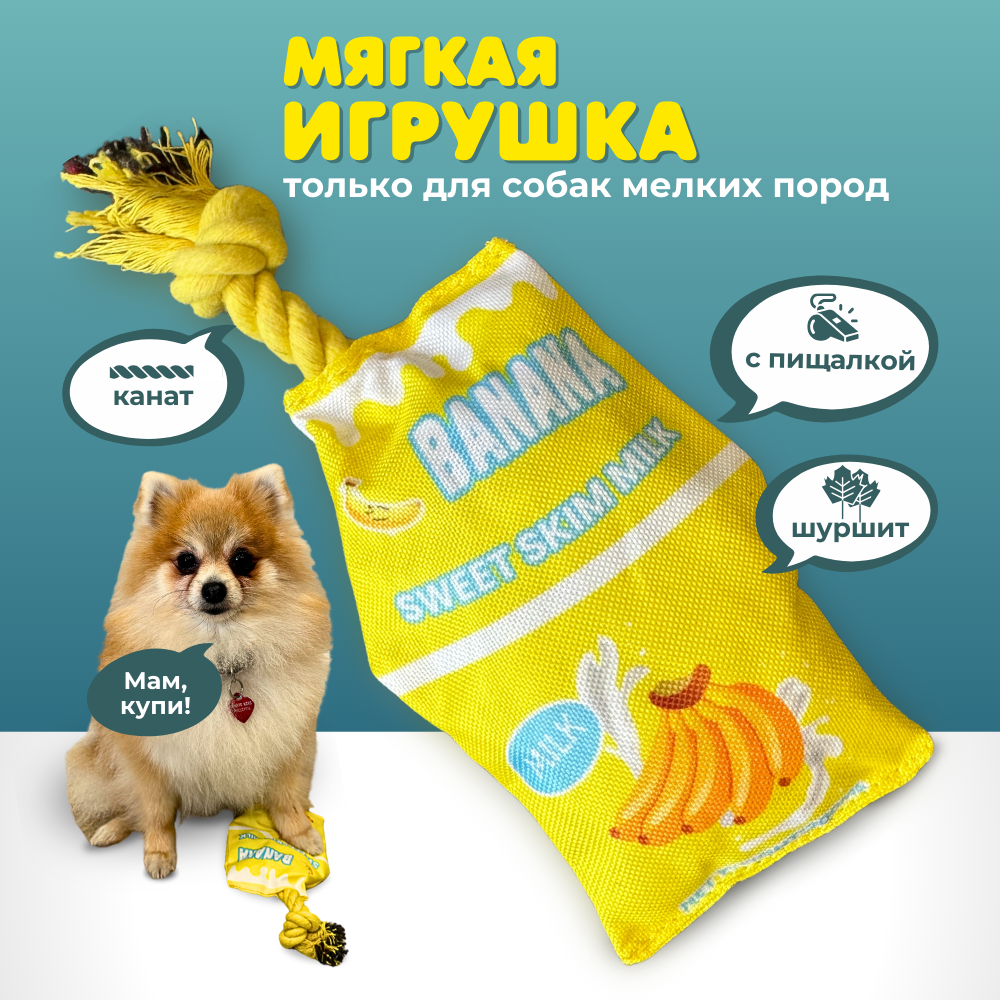 Купить Игрушка для собак маленьких и щенков средних пород Homegiraffe, мягкая, с канатом, шуршащая с пищалкой