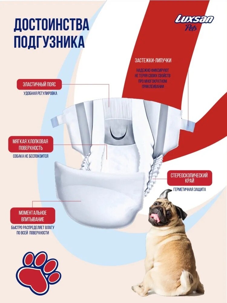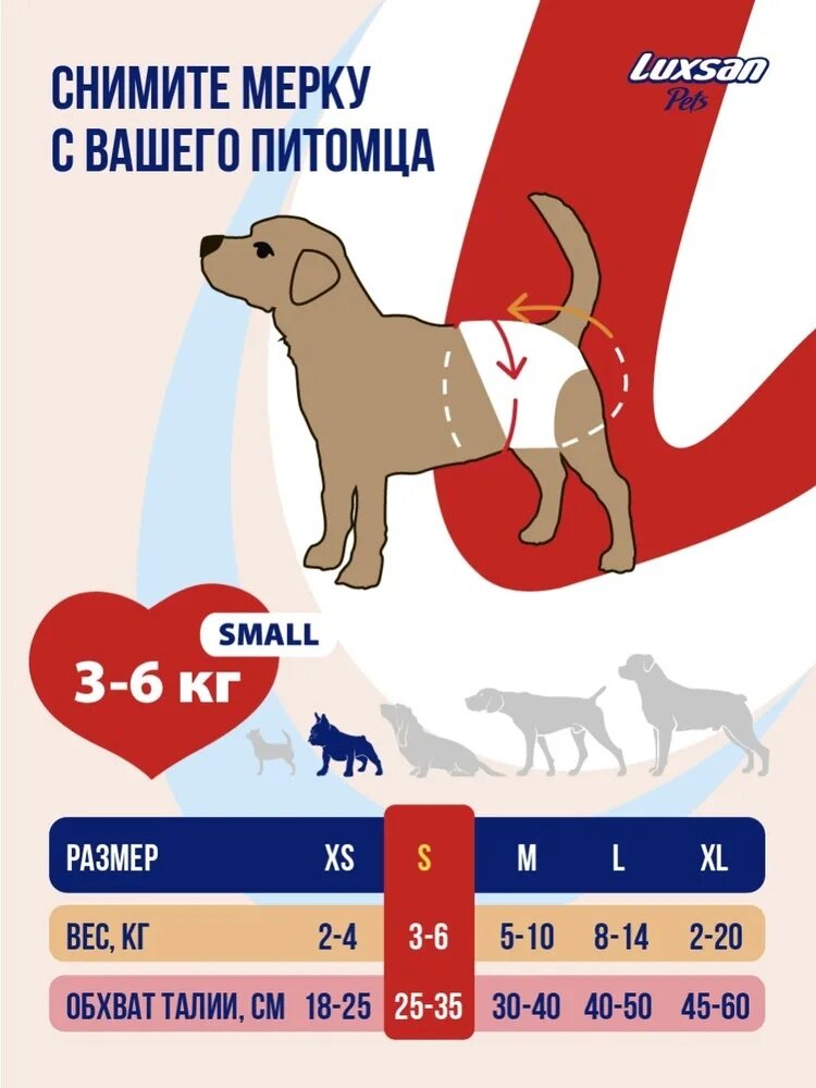 Подгузники для животных S (3-6кг)(25-35см) 16шт/уп LUXSAN Premium интересное: