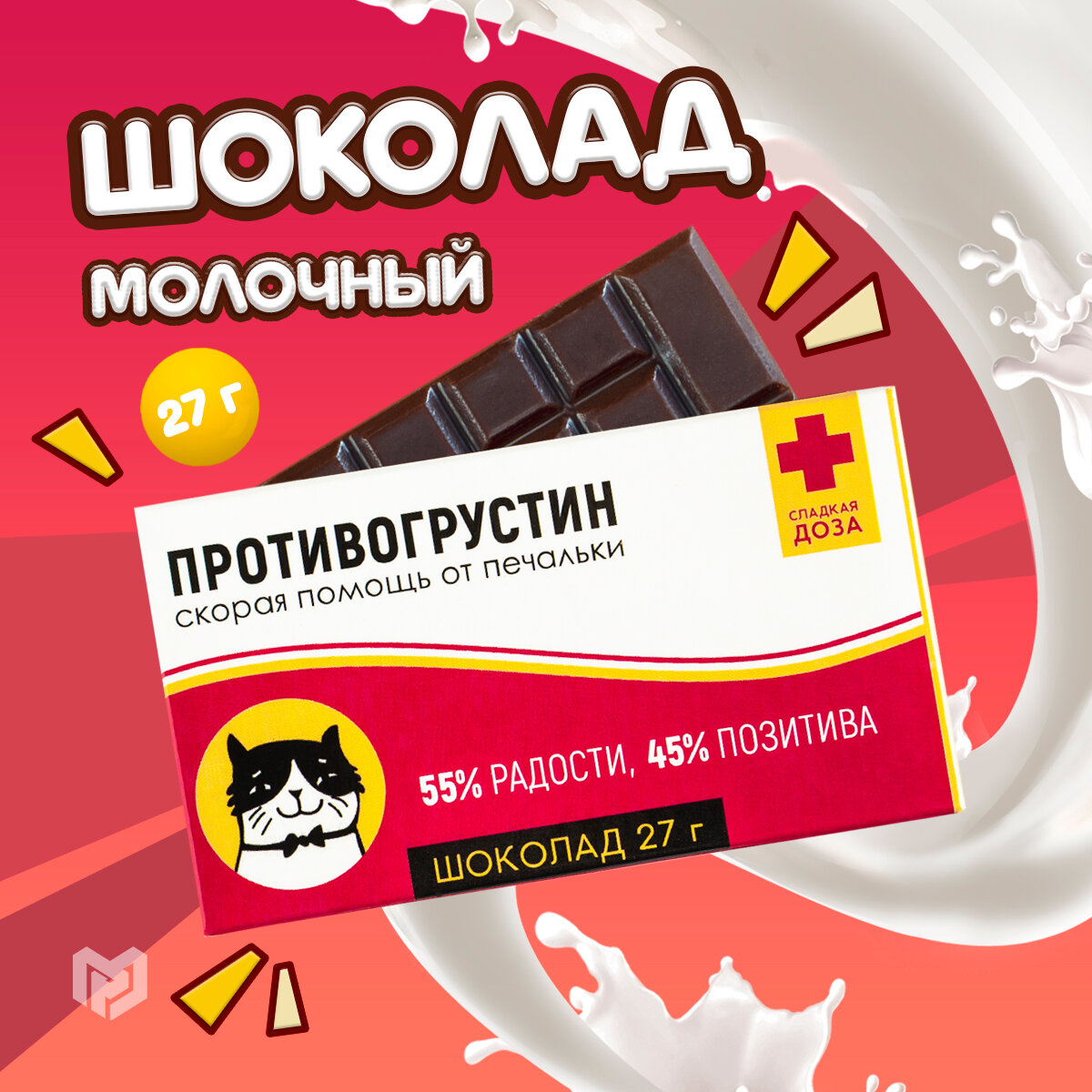 Подарочный молочный шоколад "Противогрустин", 27 г
