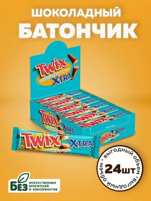 Шоколадный батончик Twix Xtra "Соленая Карамель" с соленой карамелью, 24 шт по 82 г