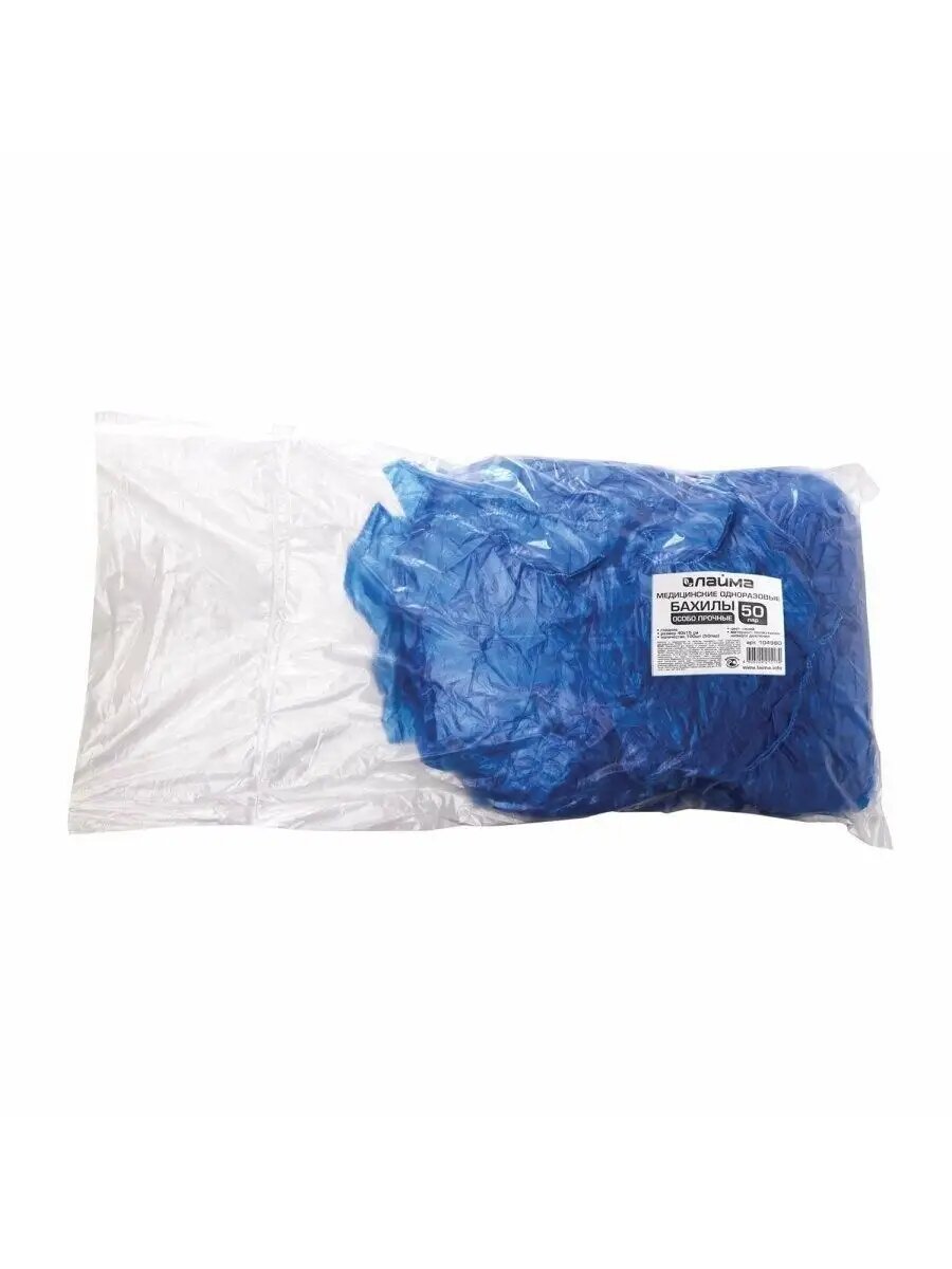 Бахилы комплект 100 штук (50 пар), особо прочные, размер 40х14 см, 55 мкм, 6 г, ПНД, LAIMA, 104980 интересное: