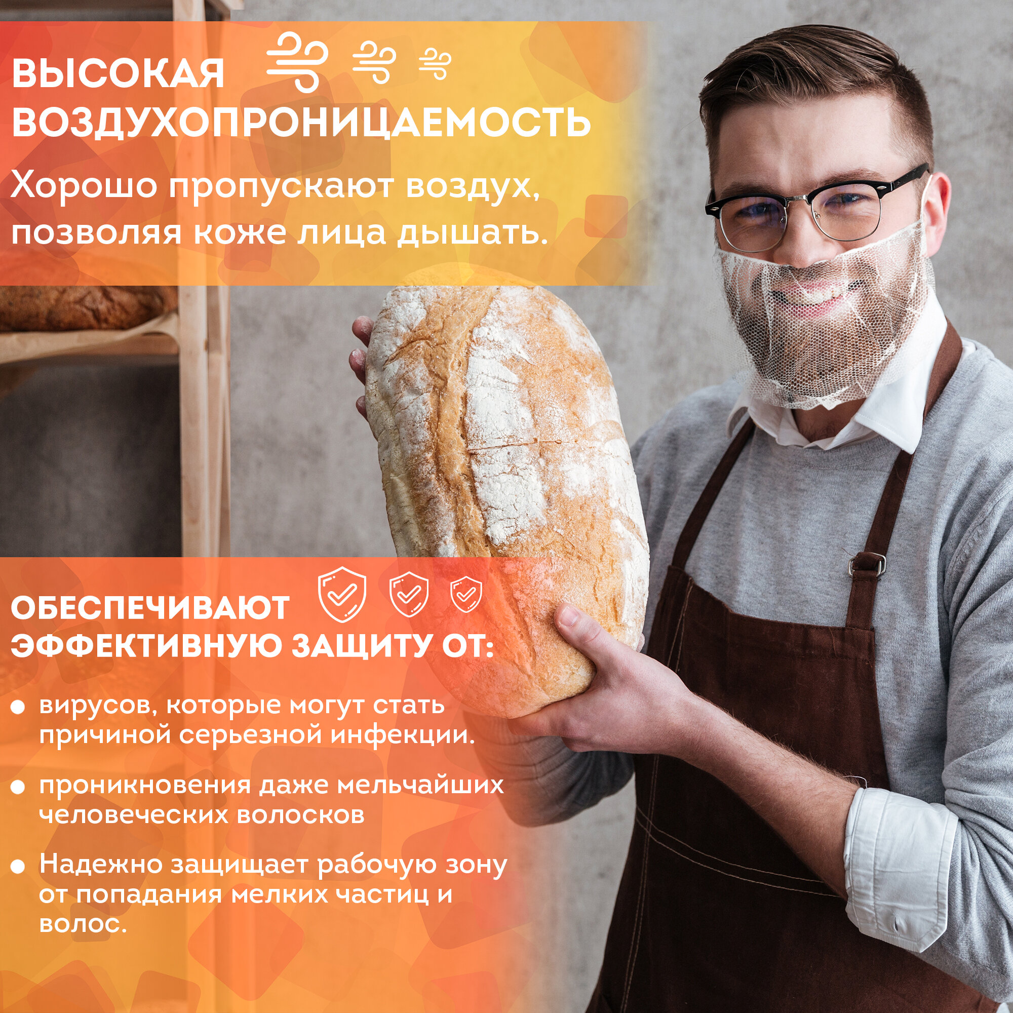 Набородник одноразовый OZBERRY. Защитная маска для бороды, сетка на бороду медицинская, для повара,100шт, белый. интересное: