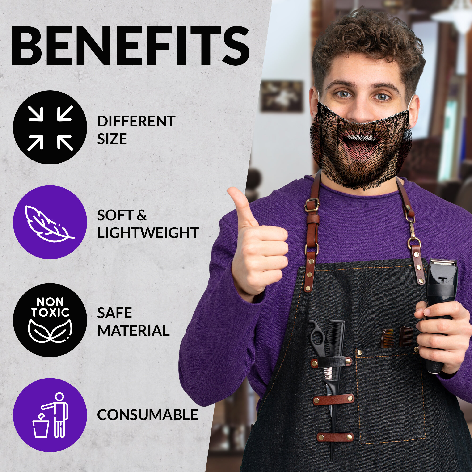 СохранитьНабородник одноразовый OZBERRY. Защитная маска для бороды, сетка на бороду медицинская, для повара,100шт, черный. интересное:
