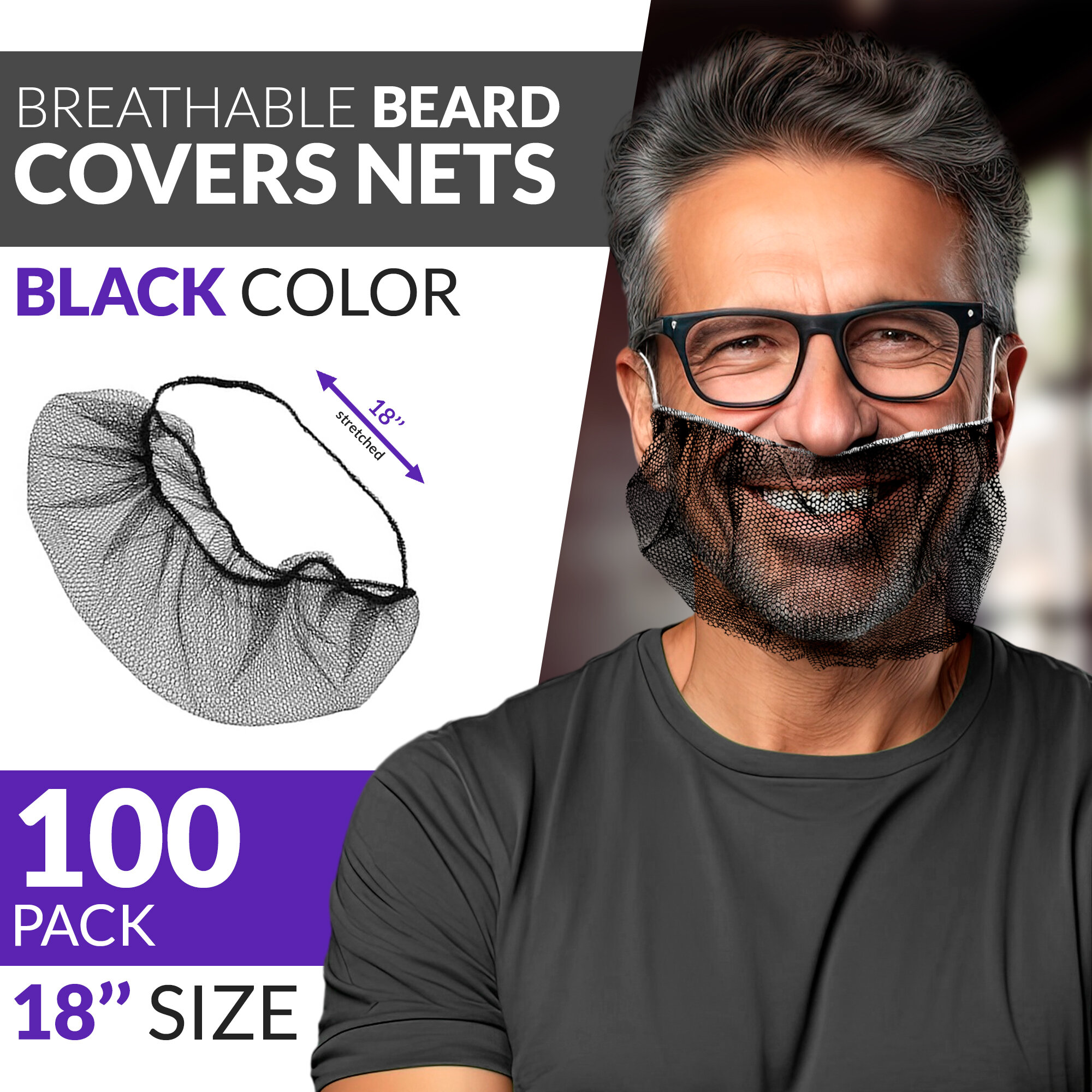 Набородник одноразовый полипропилен черный ABC Pack & Supply, 100шт. Защитная маска для бороды, сетка на бороду медицинская, для повара, в общепит