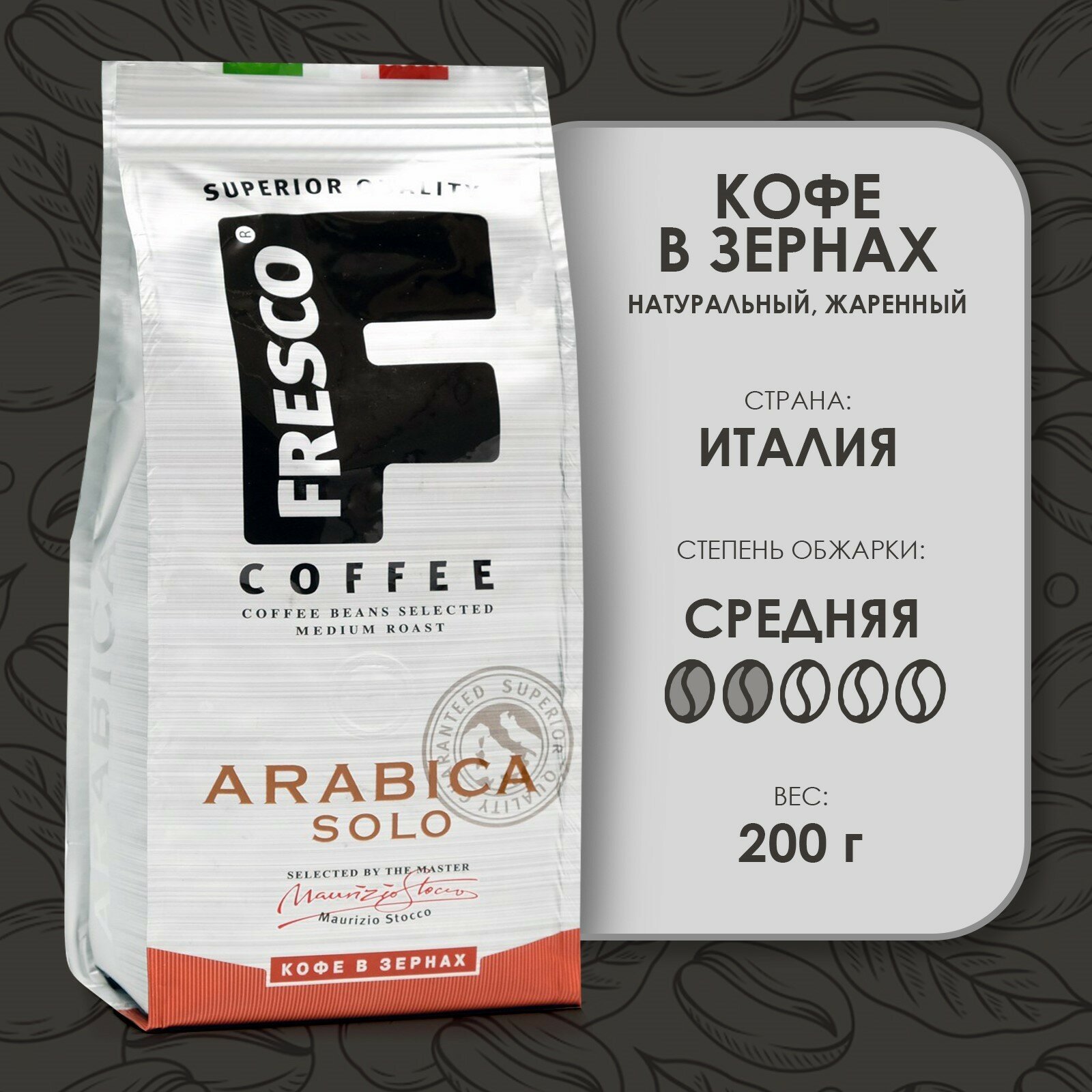 Кофе FRESCO Arabica Solo зерно, 200 г интересное: