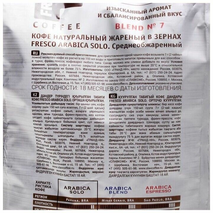 Кофе FRESCO Arabica Solo 500г, зерно интересное:
