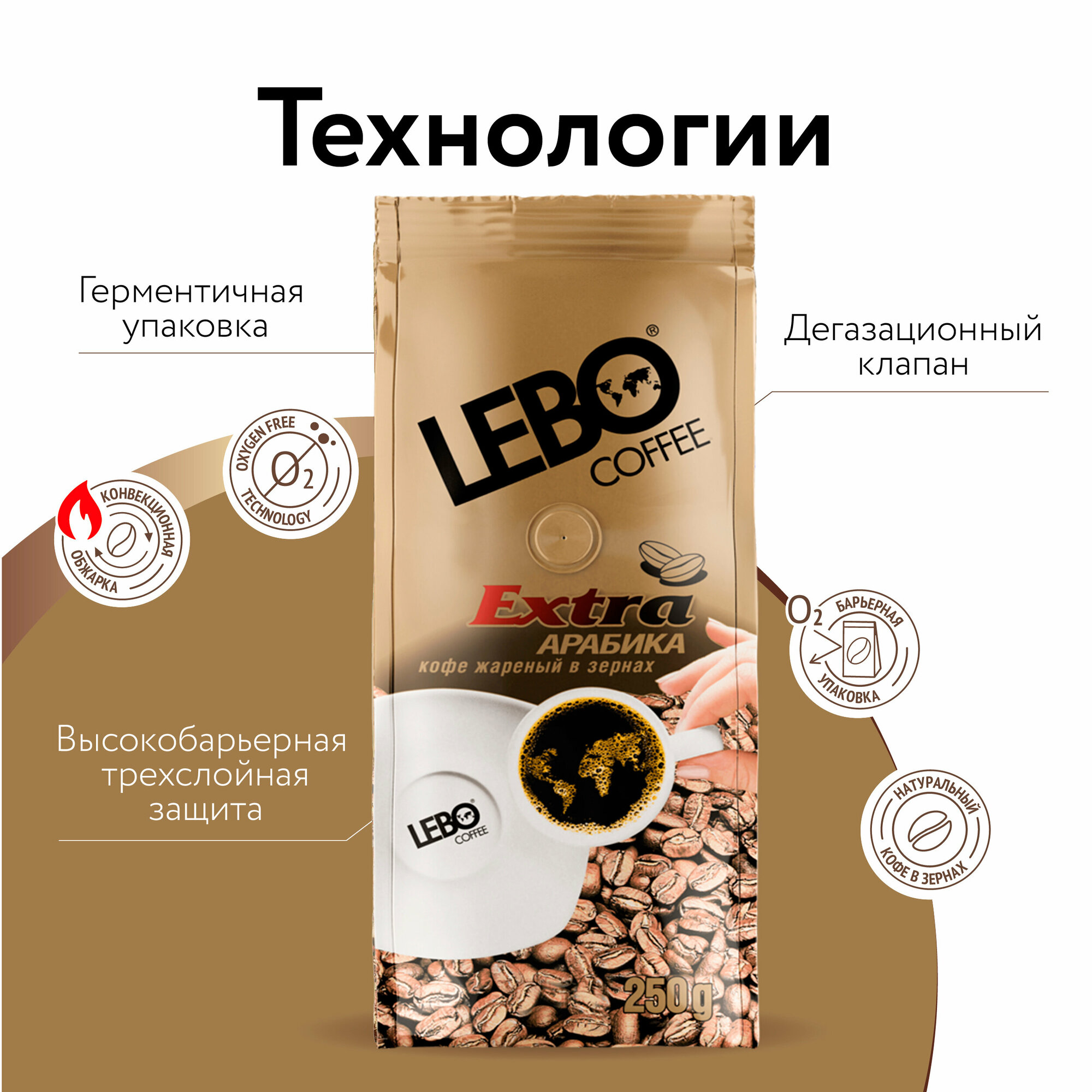 Кофе в зернах "Lebo" Extra, Арабика 100%, 250г, средняя обжарка