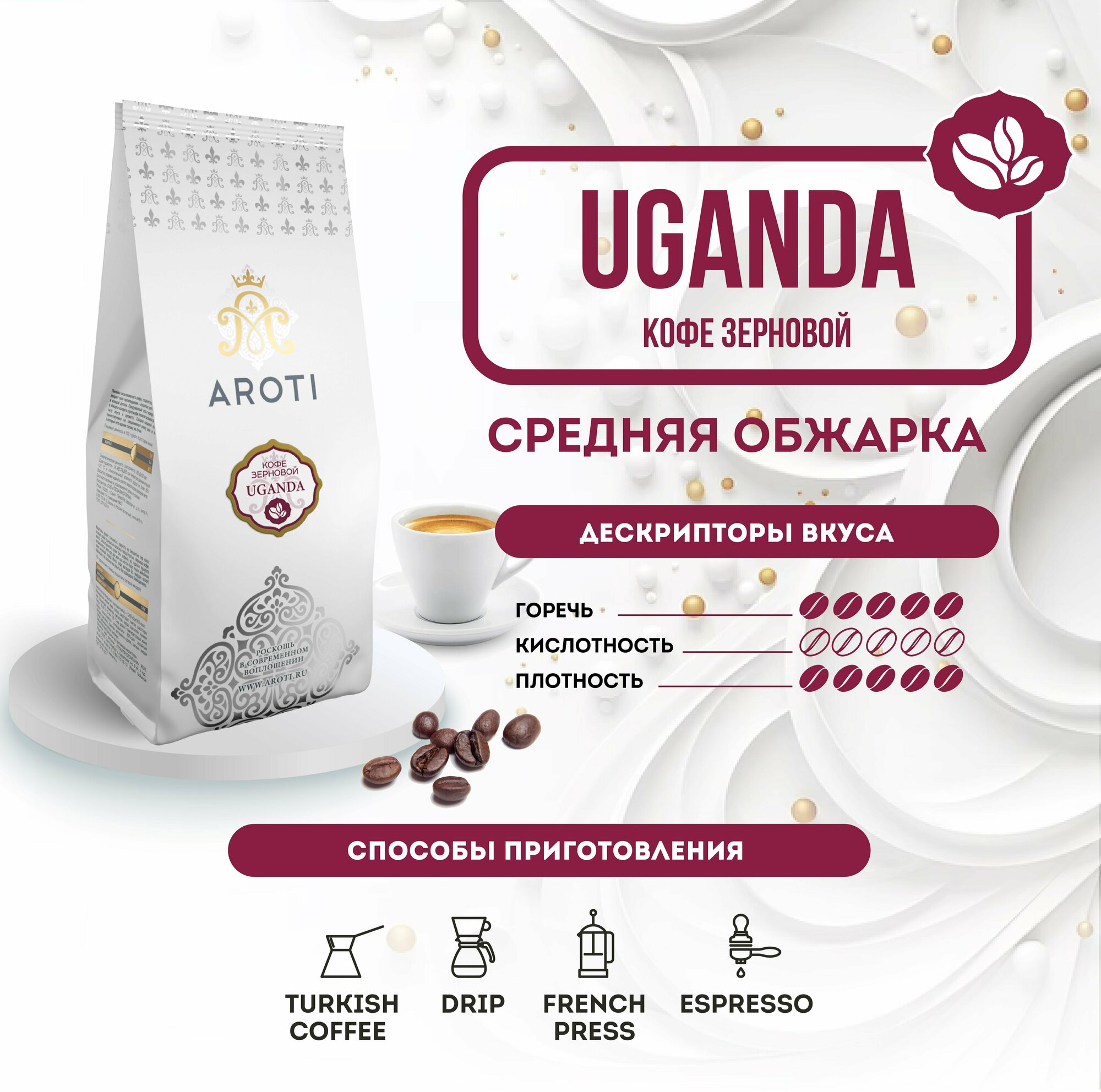 Кофе в зёрнах моносорт робуста UGANDA (Уганда), Aroti, средняя обжарка, свежеобжаренный, 250гр. интересное: