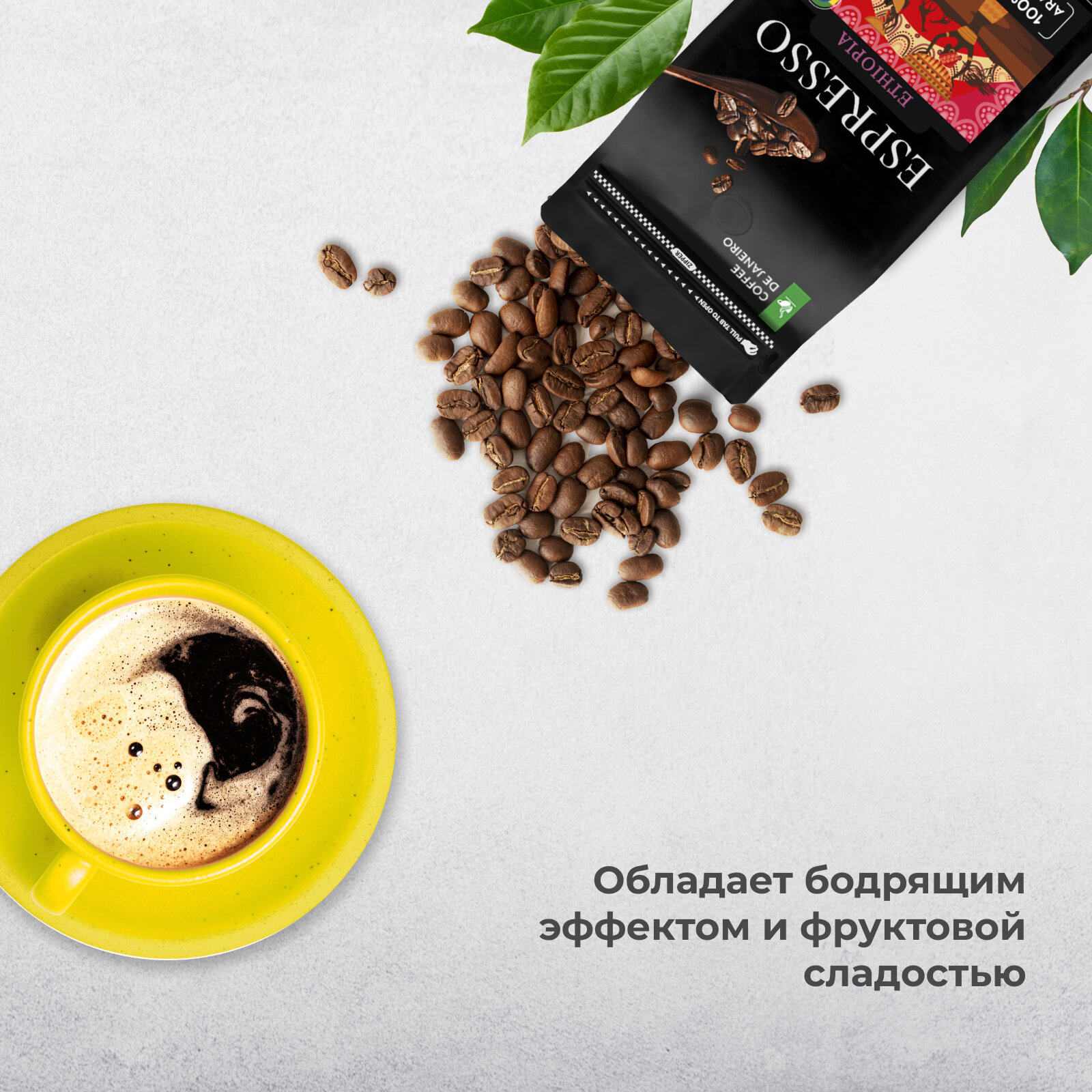 Бразильский кофе в зёрнах 1кг DE JANEIRO (ДЕ жанейро) Кофе в зёрнах 1 кг ESPRESSO ETHIOPIA 100% Арабика, в упаковке Zip-Lock / Зерновой кофе 1 кг