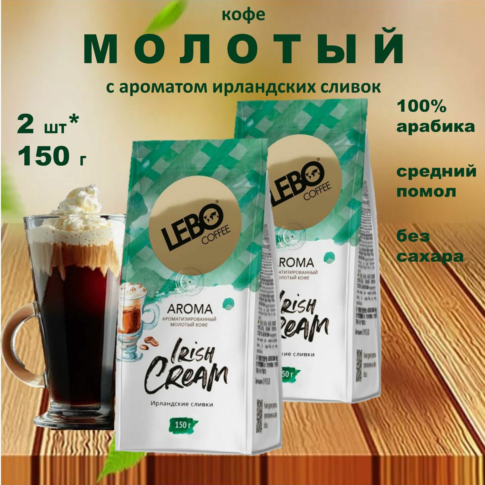 Кофе Лебо Айриш Крим 2шт*150 г молотый ароматизированный (Lebo Aroma Irish Cream)
