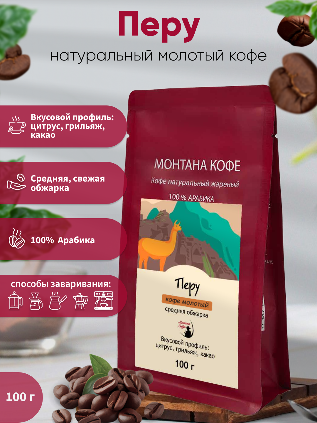 Перу Кофе молотый, 100% Арабика, Средняя обжарка, 100 гр интересное: