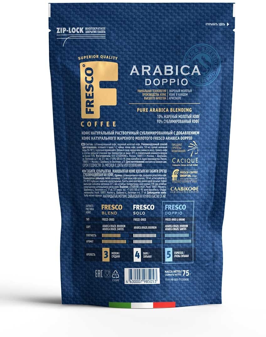 Кофе "FRESCO doppio" растворимый, с добавлением молотого, 75 г интересное: