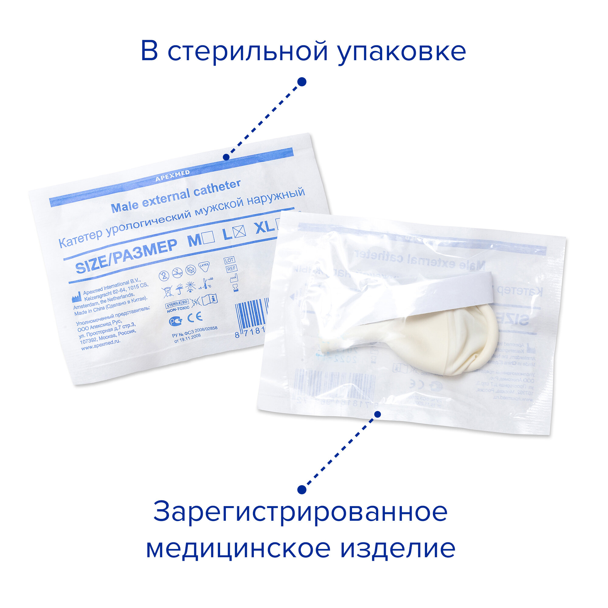 Катетер урологический мужской наружный (уропрезерватив) латексный, 10 шт, Apexmed интересное: