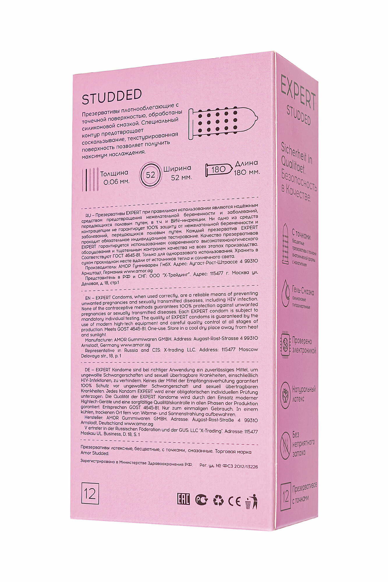 Презервативы EXPERT Studded Germany 12шт. (облегающие, точечные) 915/1