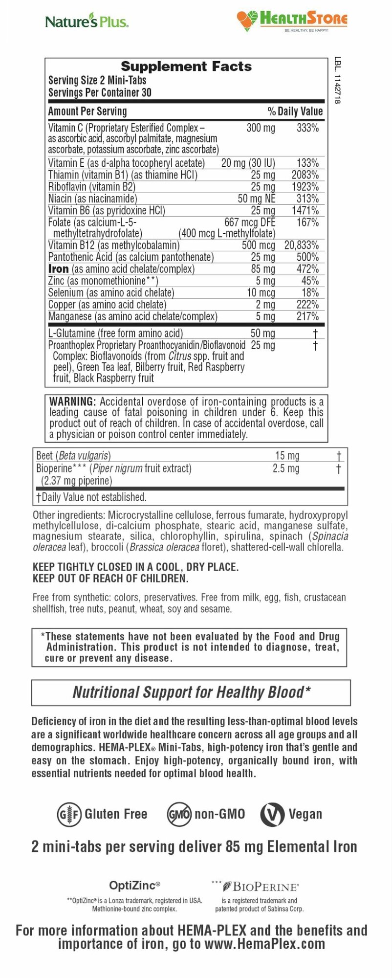Natures Plus, Hema-Plex, Железо с незаменимыми питательными веществами, 60 мини-таблеток