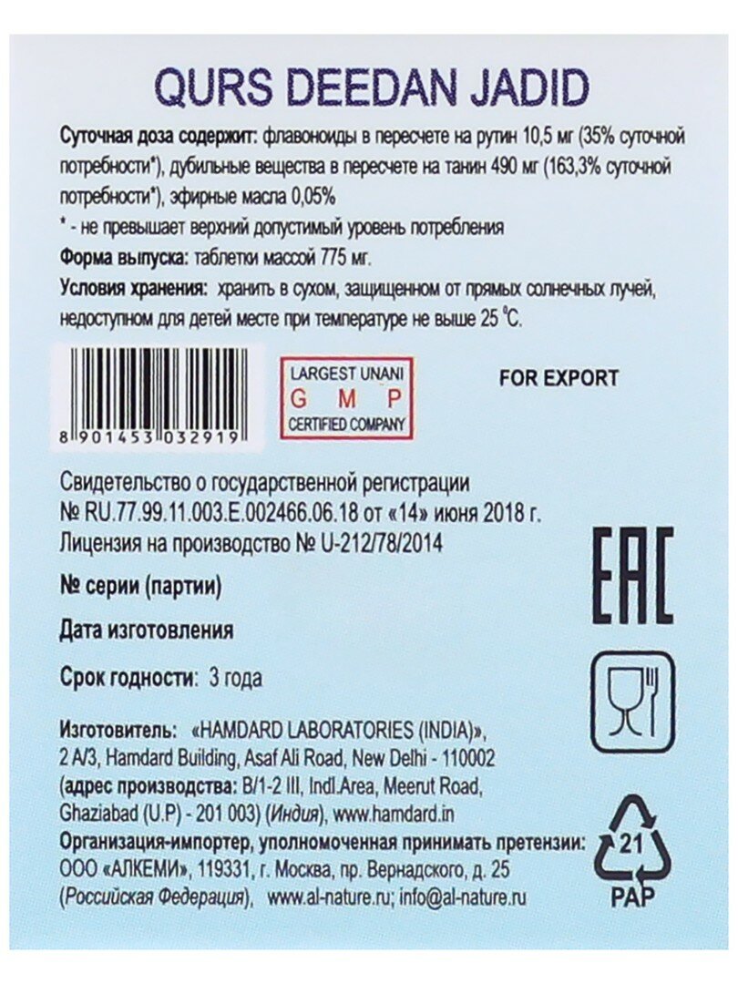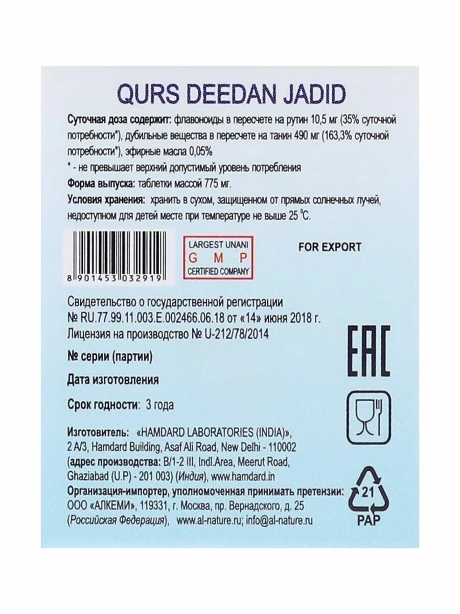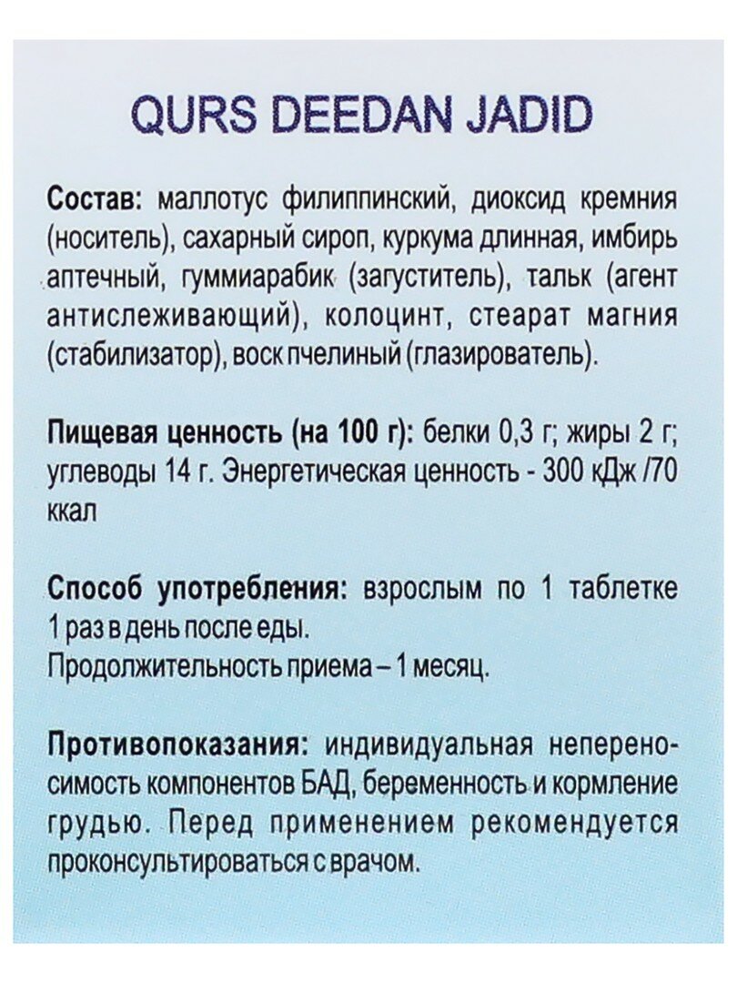 | Название препарата | Qurs Deedan Jadeed |