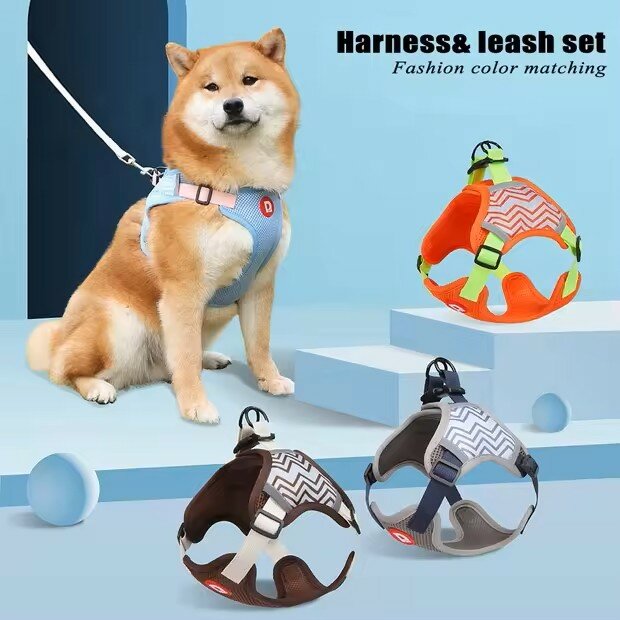 Шлейка для собак анатомическая прогулочная, голубая, размер (M), прогулочный регулируемый жилет с поводком, поводок с нагрудным ремнем