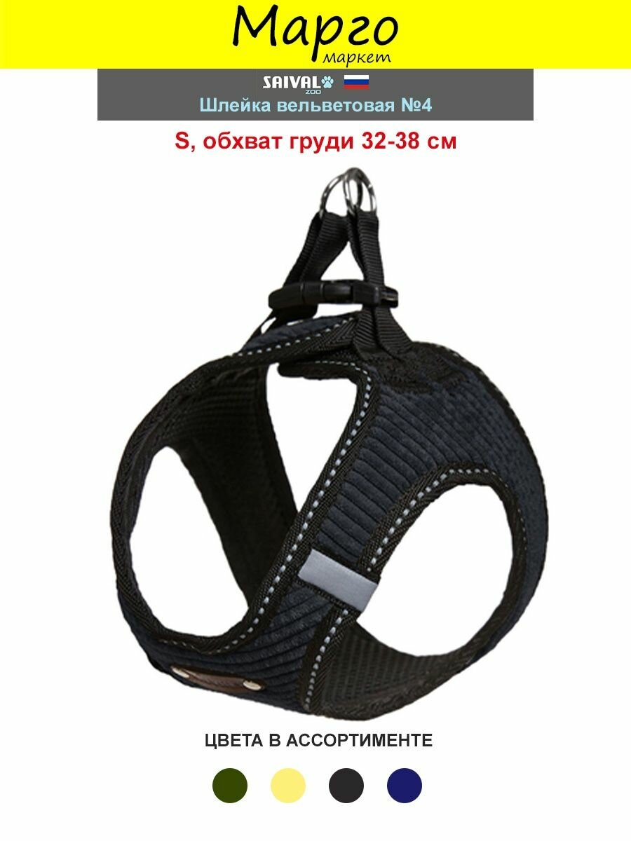 Шлейка Saival вельветовая №4 S (обхват груди 32-38см) чёрная