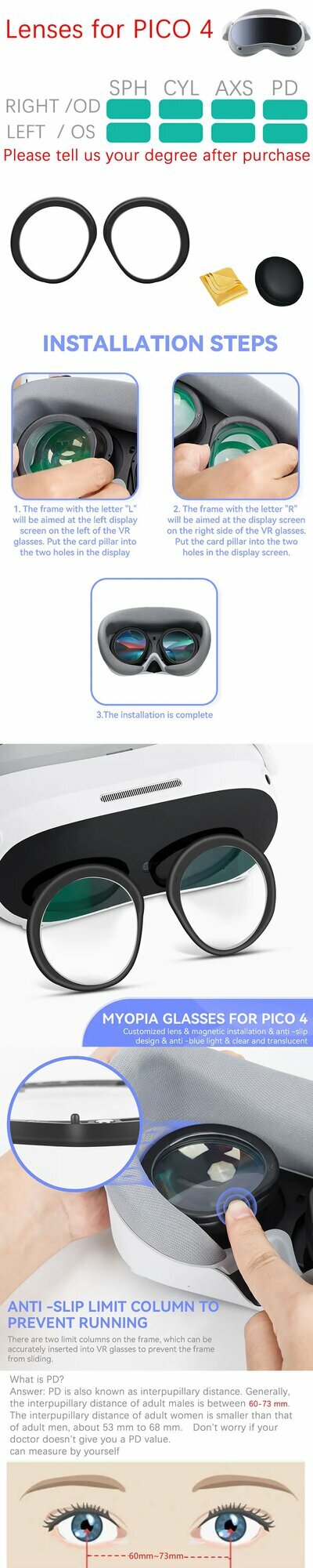 Линзы для Oculus Quest 2 Quest 3 UZCMVR, for pico 4 Anti blue