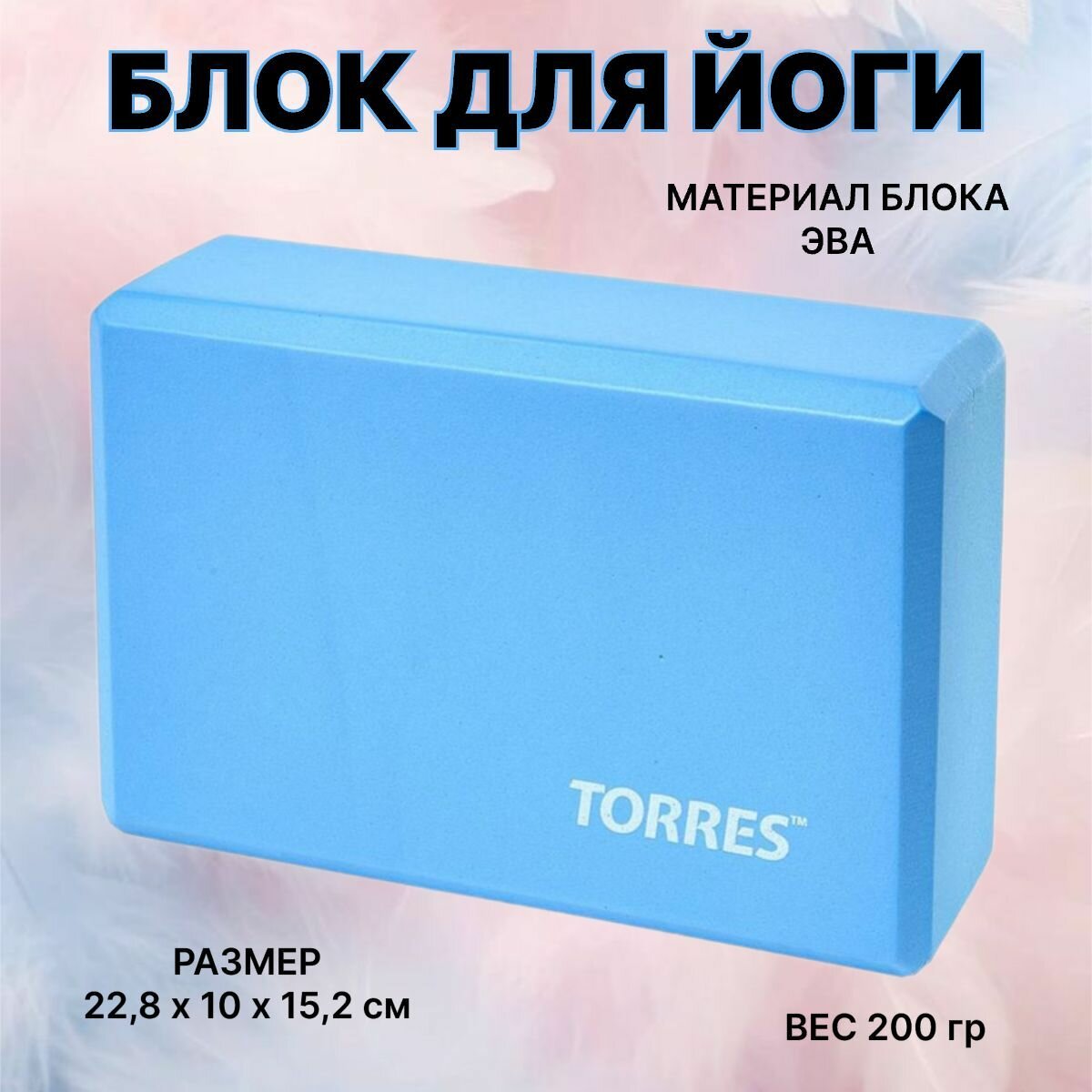 Блок для йоги TORRES YL8005, размер 8x15x23 см, голубой