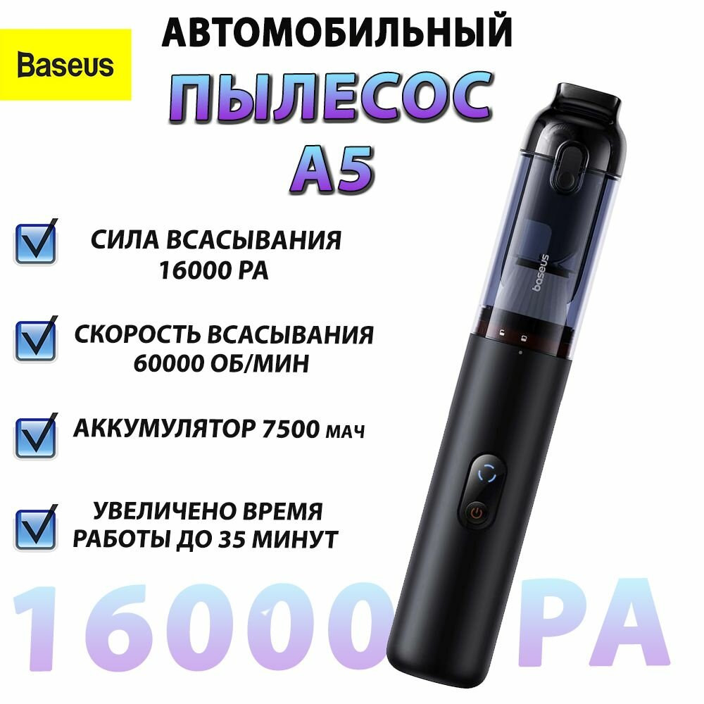 Портативный беспроводной автомобильный пылесос Baseus A5 Car air Vacuum Cleaner, с силой всасывания: 12000 PA интересное: