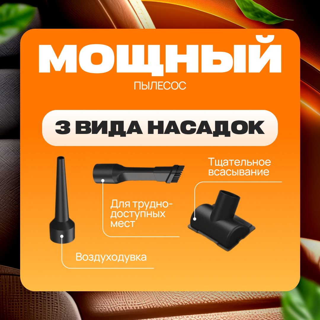 Беспроводной ручной пылесос-воздуходувка для авто и дома с 3 насадками и бесщеточным мотором, черный интересное: