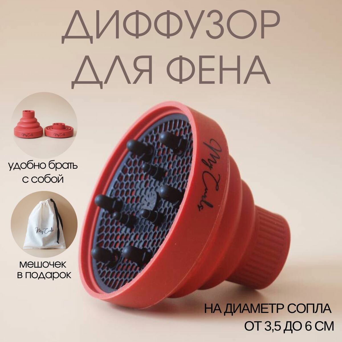 Насадка для фена My Curls, диффузор, складной, дорожный, 3,5–6 см красный интересное: