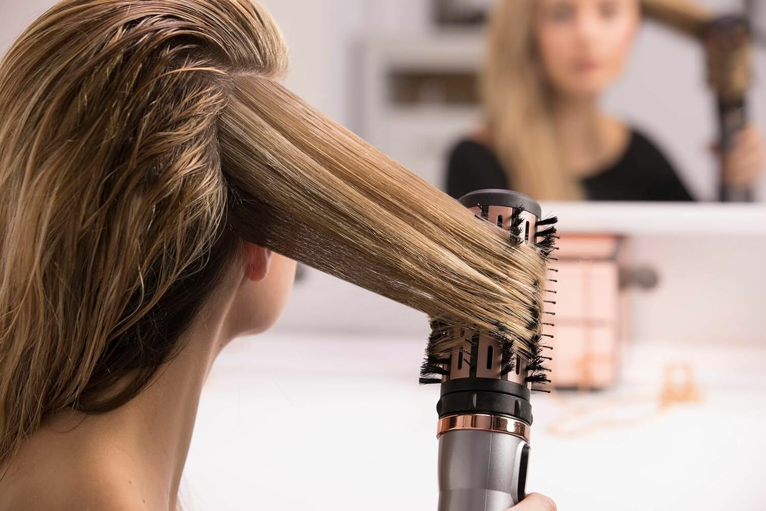 Фен-щётка WILLMARK WHS-113BC 1200 Вт 2 насадки ионизация чёрно-золотая