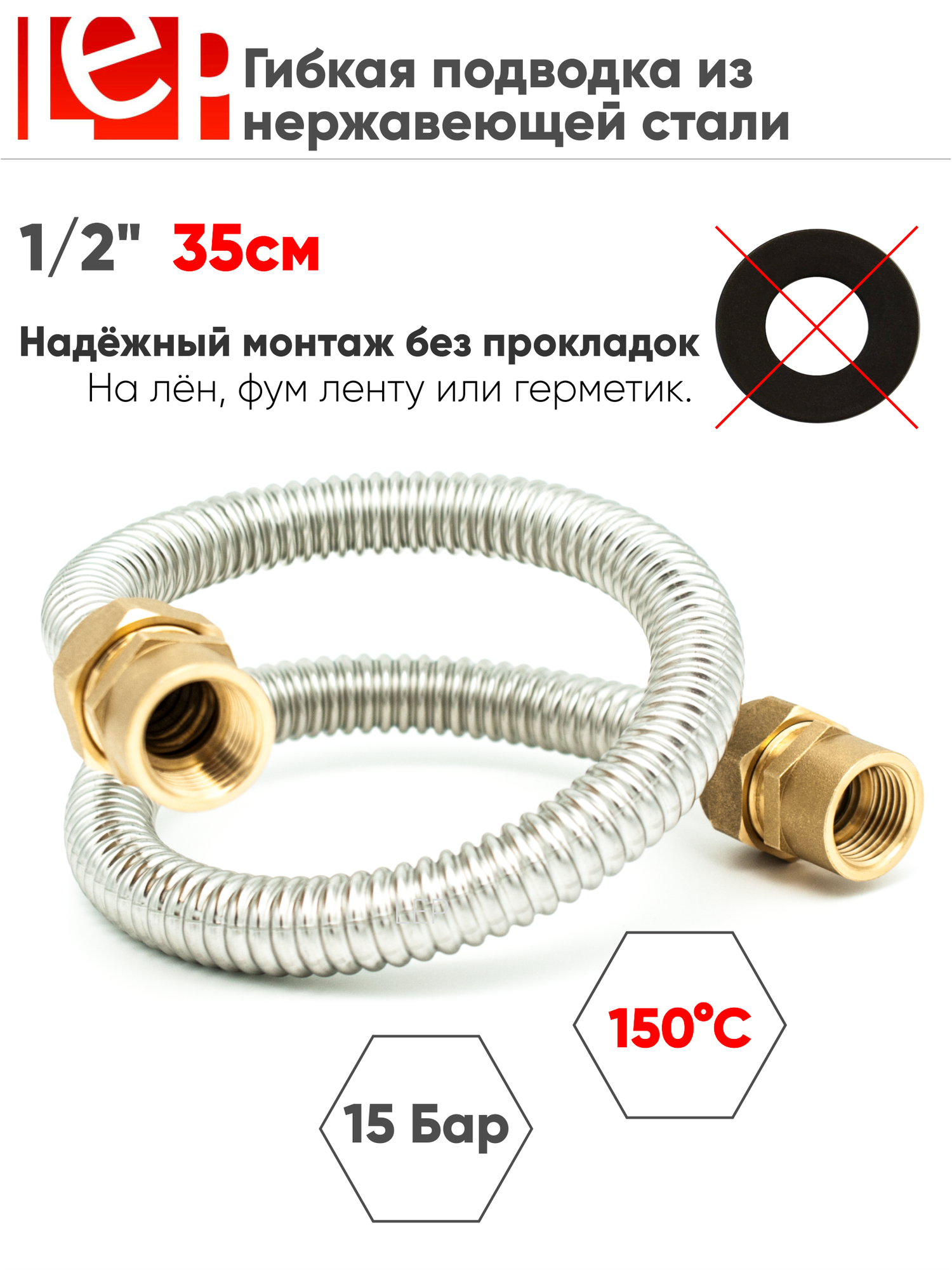 | Дополнительная информация | Гибкая подводка для воды и отопления из нержавеющей стали SS304 с толщиной стенки 0,3мм |